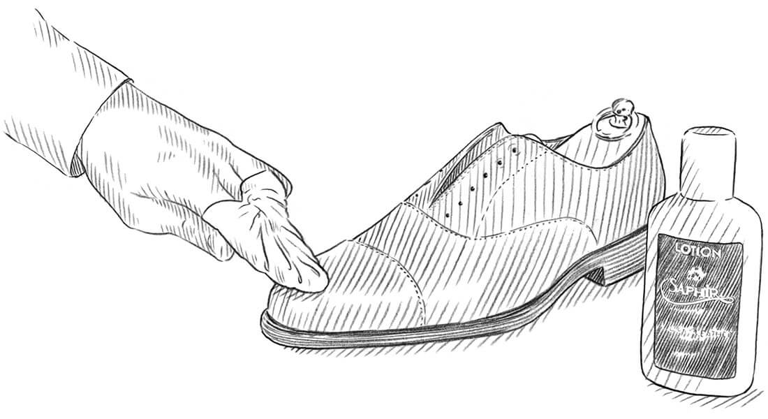 Gently rub the leather, paying particular attention to the folds and welt areas of the sole.